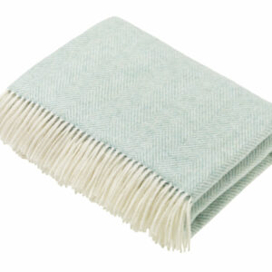 100% Aqua Merino Wool Throw Blanket, Herringbone Collection – Bronte by Moon