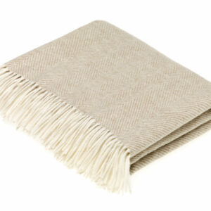 100% Beige Merino Wool Throw Blanket, Herringbone Collection – Bronte by Moon