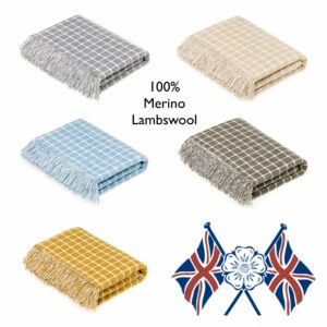 100% Gold Merino Wool Throw Blanket, Athens Check Collection – Bronte by Moon