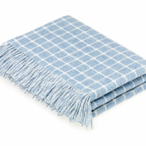 100% Aqua Merino Wool Throw Blanket, Athens Check Collection – Bronte by Moon