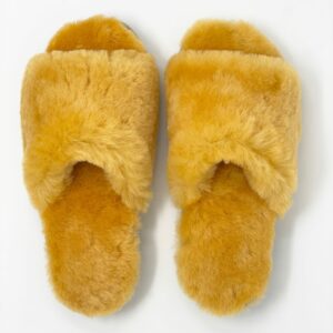 Anoa Yellow Sheepskin Sliders 100% made of real Sheepskin