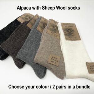 1 pair or 2 pairs of medium thickness Alpaca with Sheep wool Socks in a bundle, Organic Colour.