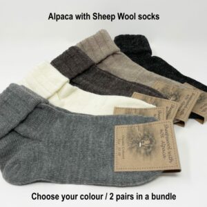 2 pair bundle of Natural Alpaca Wool with Sheep wool socks/Organic Coloured, Alpaca socks, Trekking socks, Unisex socks, Winter socks