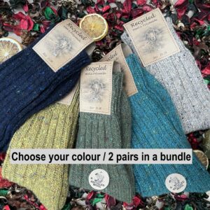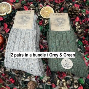 2 pair bundle of thick Recycled Sheep wool Socks, Organic Colour.